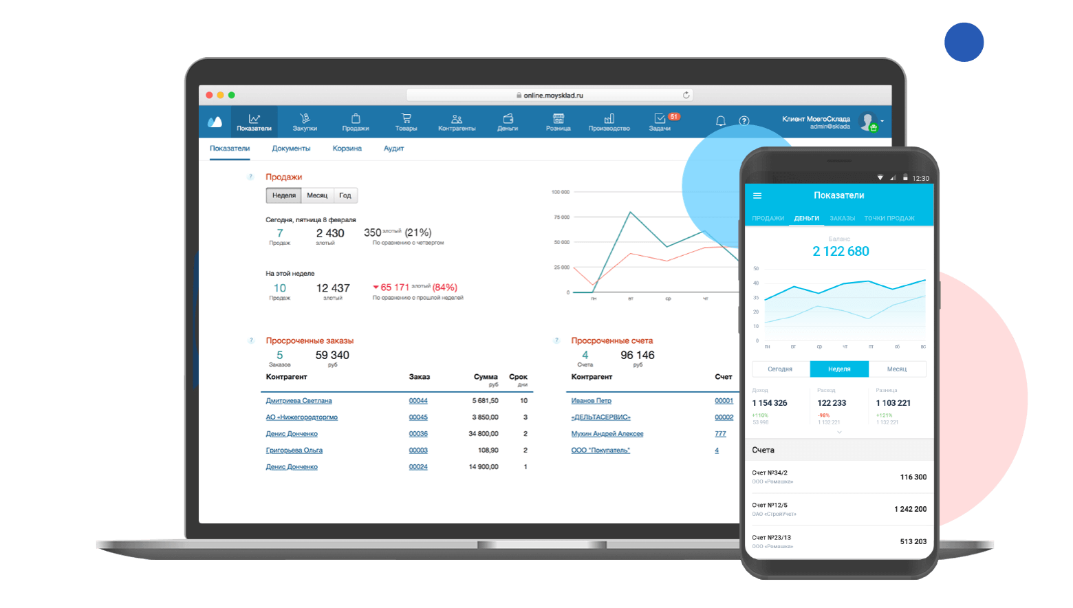МойСклад – простой и понятный онлайн-сервис для управления торговлей и складом. Может использоваться как в оптовых продажах так и электронной коммерции, розничной торговле. Помогает вести закупки и складской учет, контролировать взаиморасчеты с покупателем или поставщиком.