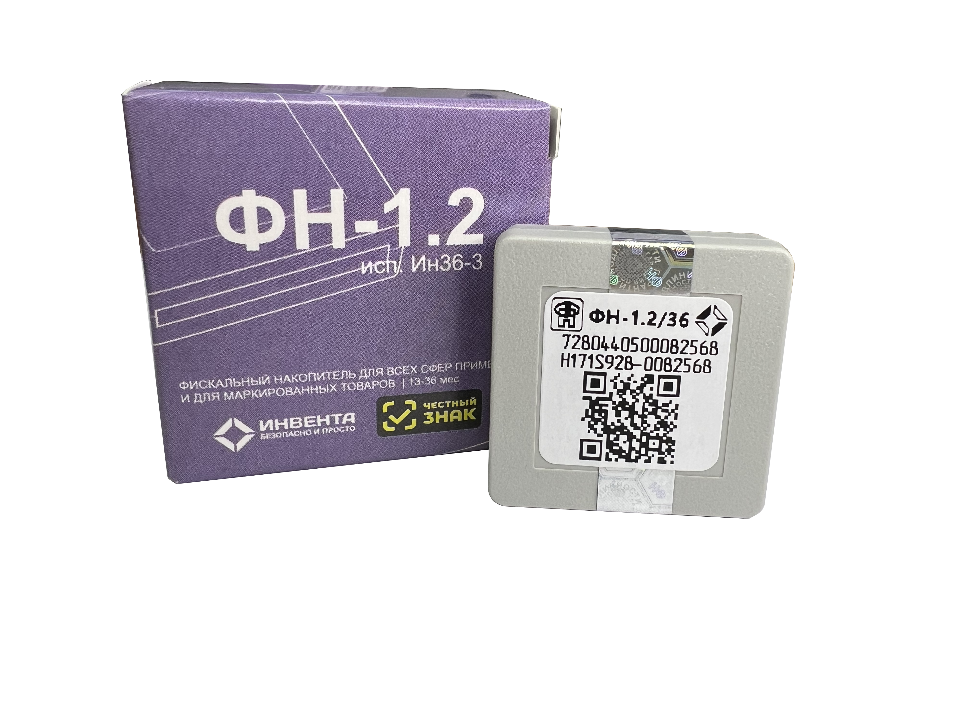 Фискальный накопитель ФН-1.2 для маркировки на 36 месяцев. Поддерживает версии Формата Фискальных Документов: 1.0; 1.05; 1.1 и обязательно 1.2.
