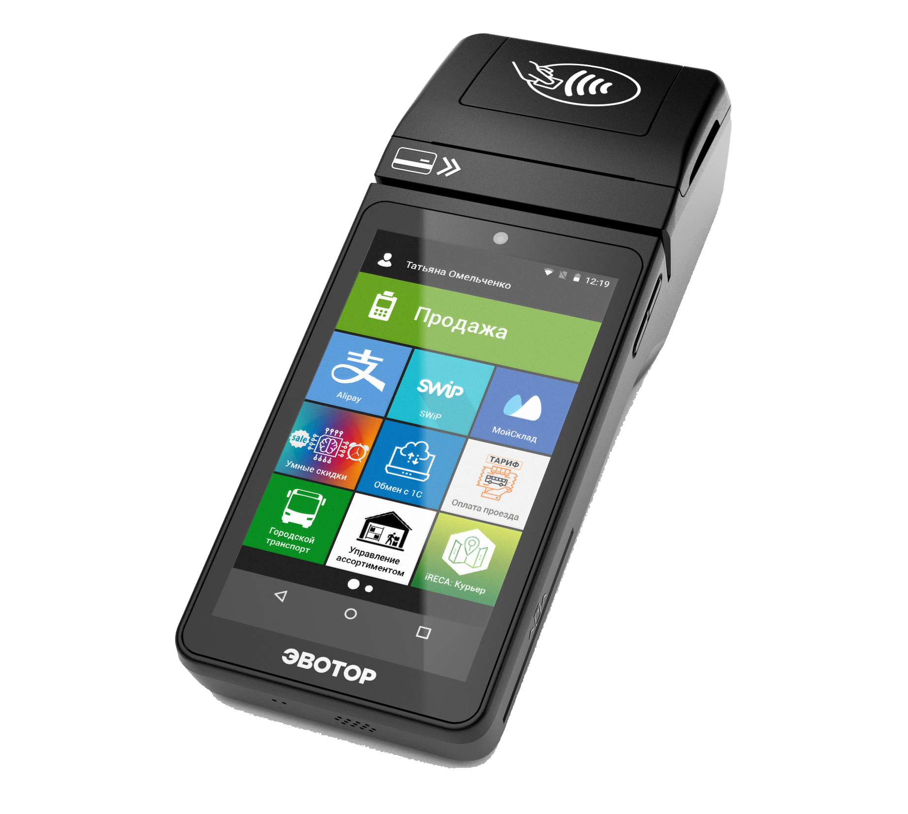 Данное устройство, предлагаемое известным российским производителем, относится к формату «два в одном». Оно полностью соответствует критериям закона об онлайн-кассах, одновременно являясь удобным терминалом для оплаты. Это оборудование производитель рекомендует владельцам организаций, которые предоставляют услуги доставки, привоза и оплаты с помощью курьеров (покупатель имеет возможность осуществить оплату прямо на месте). Также вариант подойдет интернет-магазинам, но будет уместен и в самых обычных торговых точках.