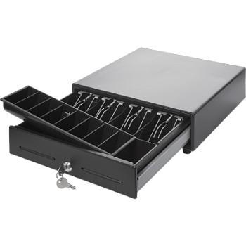 Компактные размеры и лоток на металлическом поддоне с 13-ю отделениями для хранения наличных делают его одним из самых популярных ящиков, а электромеханический трехпозиционный замок на 1 000 000 циклов открытия обеспечивает прочность и долговечность